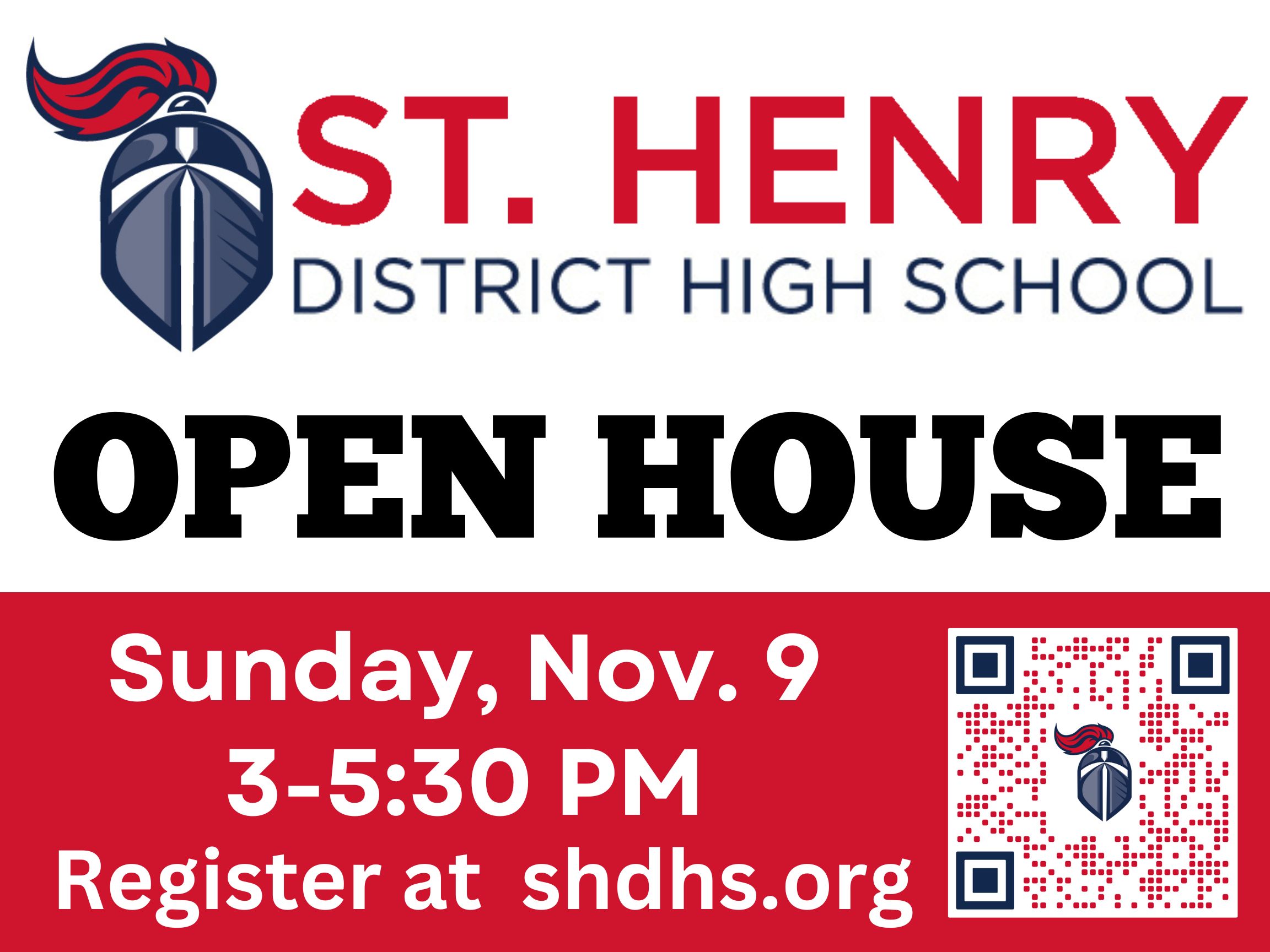Join us for Open House at St. Henry District High School on Sunday, November 9, 2025, from 3:00–5:30 p.m.