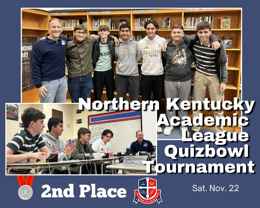 Congratulations, once again, to the Academic Team for an excellent performance on Saturday, November 22! The CRU won 5 of their 6 matches, taking 2nd Place in the Northern Kentucky Academic League Quizbowl Tournament. The team was led by Luke Jankowski and consisted of Aneesh Sehgal, Noah Von Handorf, Samuel Haubner, Lucas Burton, and Ethan Lubbers. Also, congratulations to Luke Jankowski for placing 2nd individually as well, based on the toss-up questions answered!
