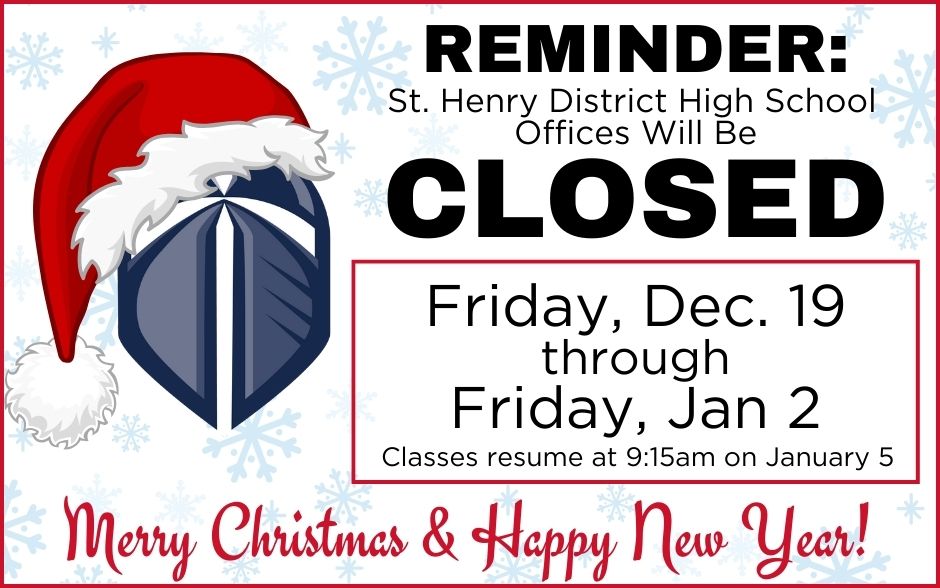 Scholarship opportunities for current St. Henry District High School families will open on January 6. To apply, please visit https://shdhs.org/tuition-and-assistance/ and select Scholarship/Summer Work Opportunities.