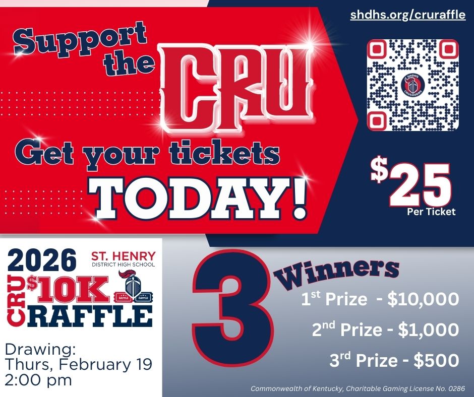 Dear Alumni and Friends, There’s still time to support St. Henry District High School and take your shot at $10,000 cash! Our CRU $10K Raffle is in full swing, and every ticket sold makes a direct impact on our students. Don’t miss your chance to win big while giving back! https://givebutter.com/26Cru10K Advancement/ Enrollment Department