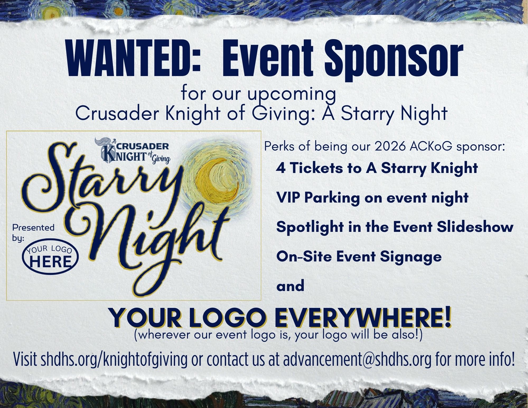 Please contact Toni Lehan in our Advancement Office at tlehan@shdhs.org.
