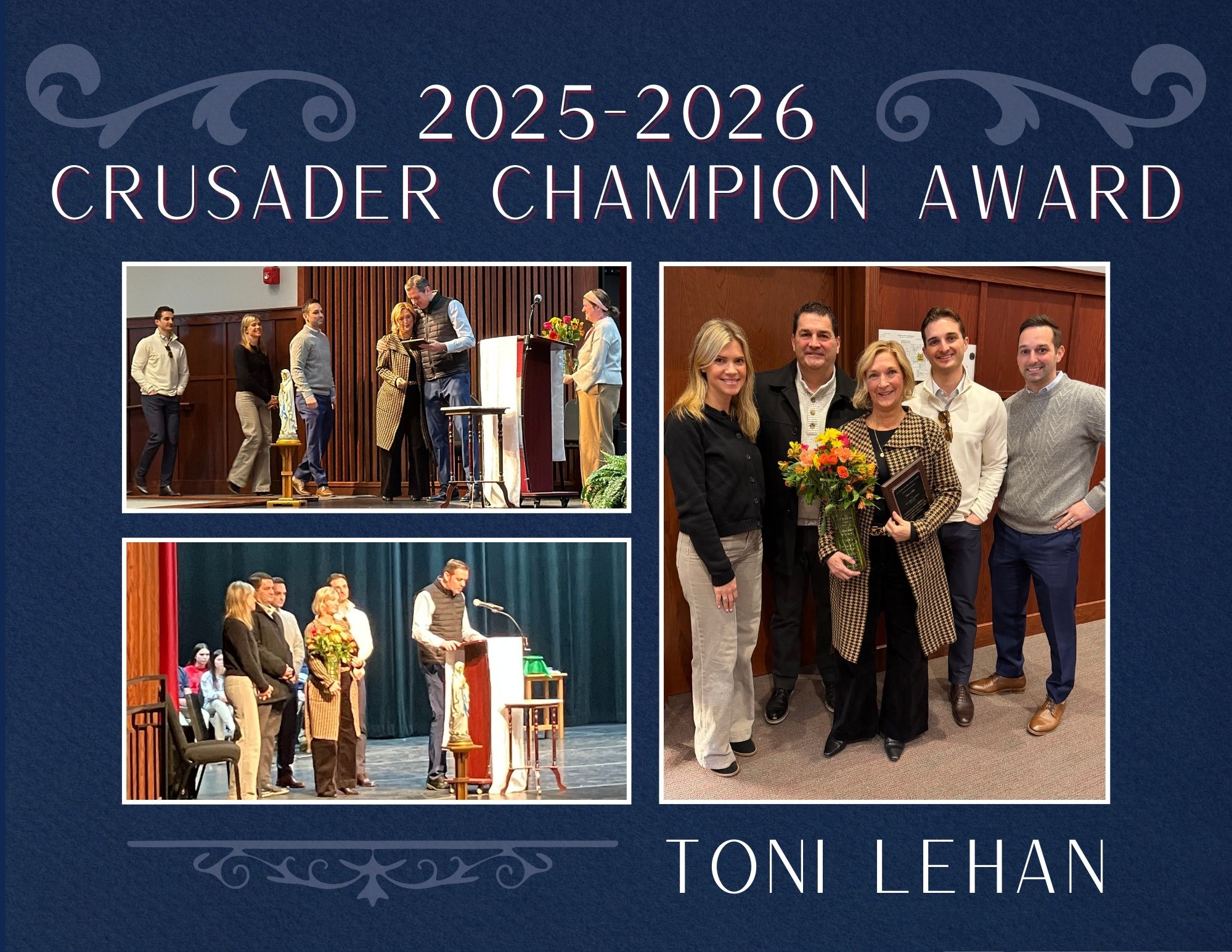 She is an incredible example of the quote from Saint Mother Teresa, which says, “The talents God has given you are not yours – they have been given to you for your use, for the glory of God. There can be no half-measures in the work.” Thank you, Toni, for being a champion of Faith, an example of Cru Grit, and for your incredible dedication to St. Henry District High School.